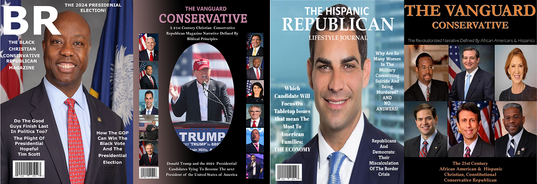 The Collection consist of The Vanguard Conservative, The Black Republican and The Hispanic Republican. Buy all three of these important and invaluable sources of information to create a party of Americans united along the values of the Christian Conservative Republcan banner. We have more in common than we think, and we are in busines to share such information and ideas to form a much more potent party base. The total price for all three is $39.80.